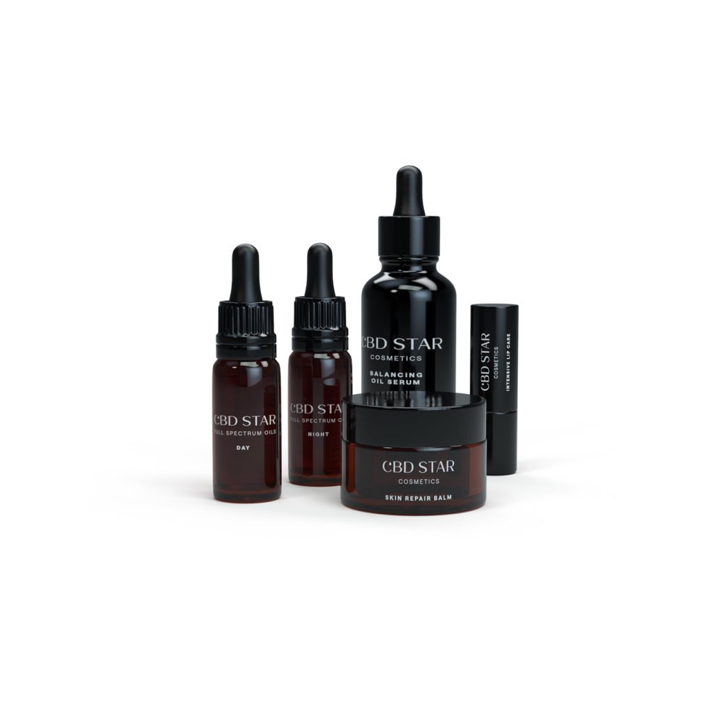 Balíček COMPLETE CARE obsahuje produkty CBD "NIGHT" OLEJ, CBD "DAY" OLEJ, BALANCING OIL SERUM, INTENSIVE LIP CARE a SKIN REPAIR BALM se slevou 15%.